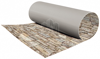 Гладкий плоский лист из оцинкованной стали с полимерным покрытием Printech Камень Серый толщиной 0,45мм шириной 1250мм с имитацией рисунка натурального дерева и камня — является одним из самых востребованных товаров на строительном рынке в Челябинске. Из него производят кровельные и фасадные материалы (металлопрофиль: черепицу, профнастил (профлист), детали водостока, сэндвич-панели, парапеты, отливы, откосы, любые другие изделия из тонколистовой рулонной стали).