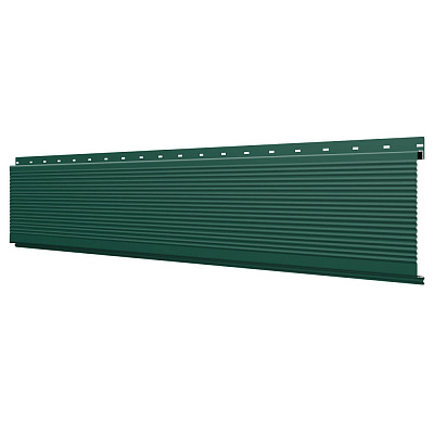 Линеарная потолочно-стеновая панель РИФЛЕНАЯ усиленная цвет RAL6005 Зеленый Мох применяется в качестве софитов для подшивы крыши, наружной и внутренней отделки потолков, стен, фронтонов фасада дома в Челябинске.