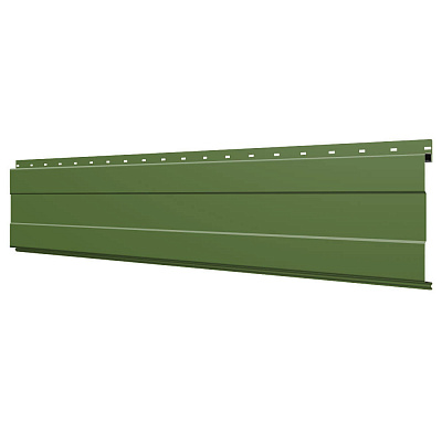 Линеарная потолочно-стеновая панель с ПОЛОСОЙ усиленная цвет RAL6002 Зеленый Лист применяется в качестве софитов для подшивы крыши, наружной и внутренней отделки потолков, стен, фронтонов фасада дома в Челябинске.