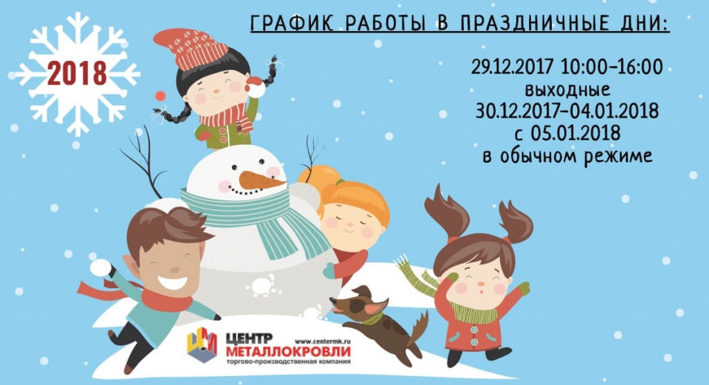 • 29.12.17 рабочий день с 10:00 до 16:00;