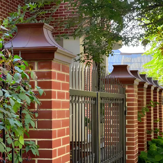 Полимерпесчаный колпак Monblan Premium коричневого цвета органично завершил столбы кирпичного забора — насыщенный тон и фактура имитируют натуральный камень и отлично сочетаются с оттенком кирпича. Колпаки плотно сидят, скрывают торцы столбов и обеспечивают надежную защиту от дождя и снега, придавая ограждению аккуратный и «дорогой» вид. Вживую продукция выглядит еще эффектнее, чем на фото: качественная обработка кромок и ровная покраска подчеркивают премиальность решения.